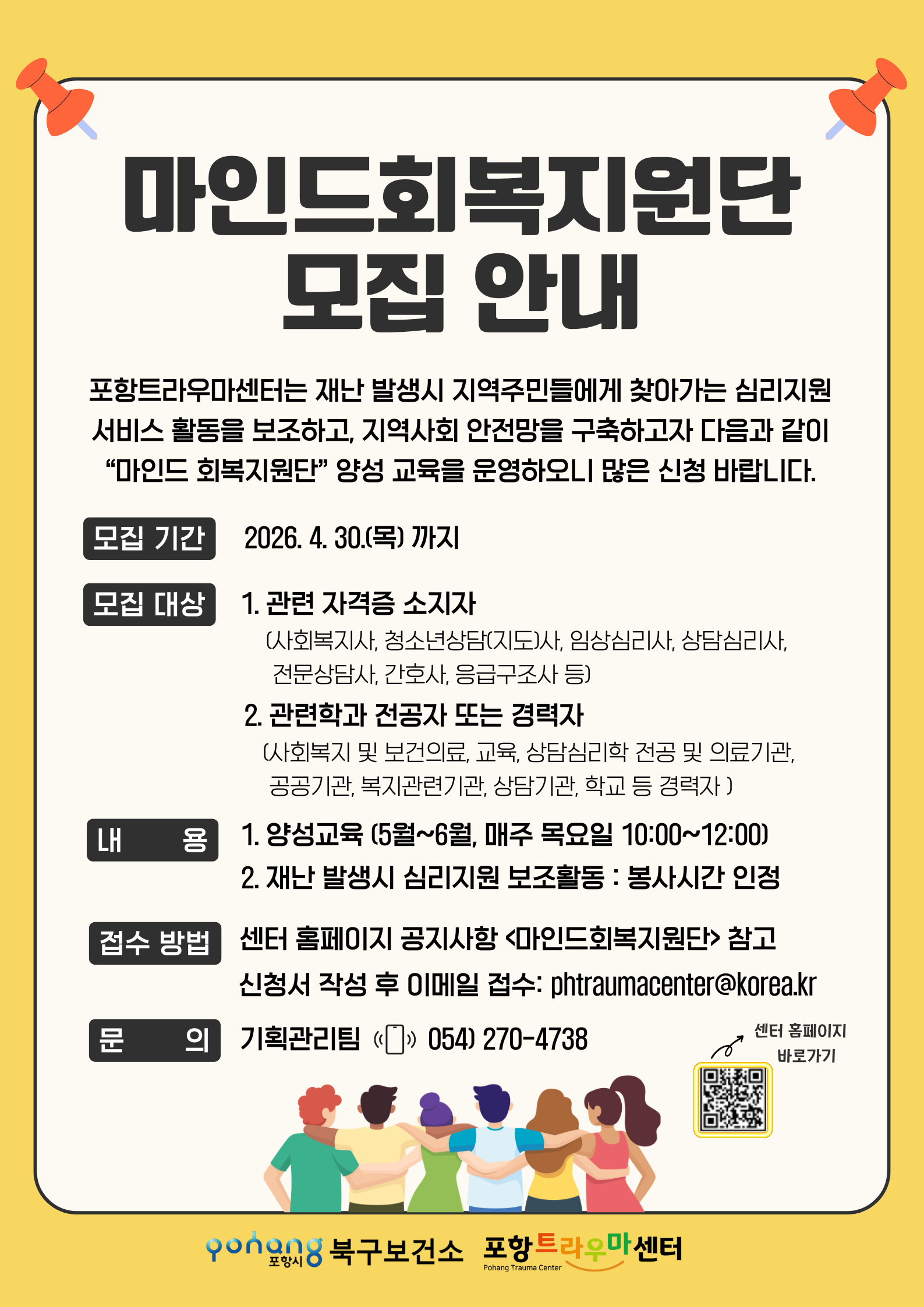 2026년 포항트라우마센터 마인드회복지원단 모집 공고