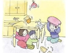 - 테이블 밑에 들어가서 몸을 보호합시다.